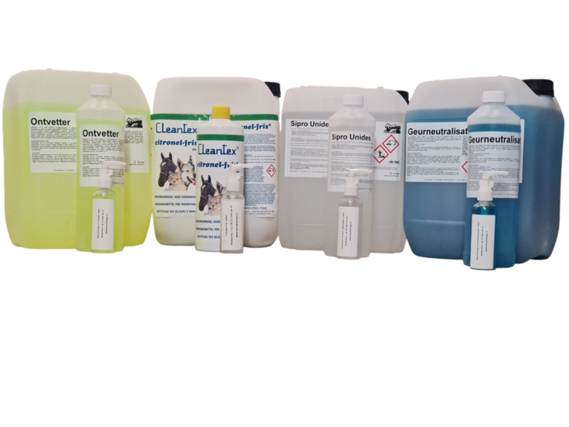 Onze reinigende producten voor dierenverblijven omvatten onder andere: